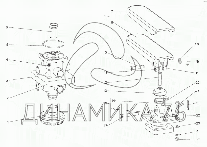 Привод тормозного крана на МЗКТ-74171 (до 2010 г.)