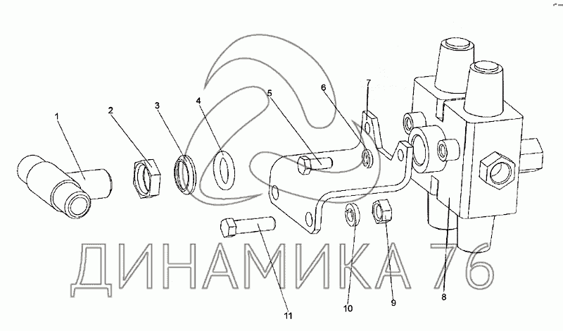 Перечень комплектующих от Установка клапана защитного на МЗКТ-74171