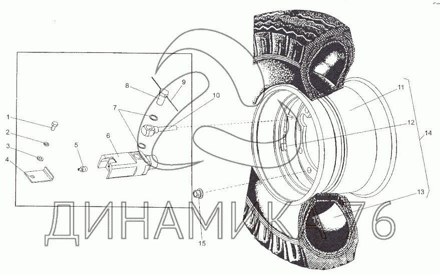 Перечень комплектующих от Установка колеса на МЗКТ-74171