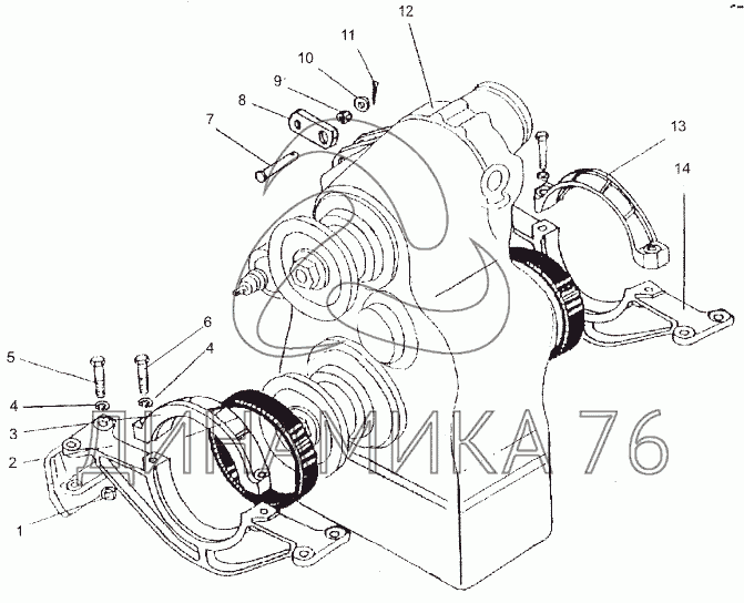Схемы запчастей предназначены для справочных целей! Мы продаем не все запчасти от Установка раздаточной коробки на МЗКТ-74171, представленные в этом списке.