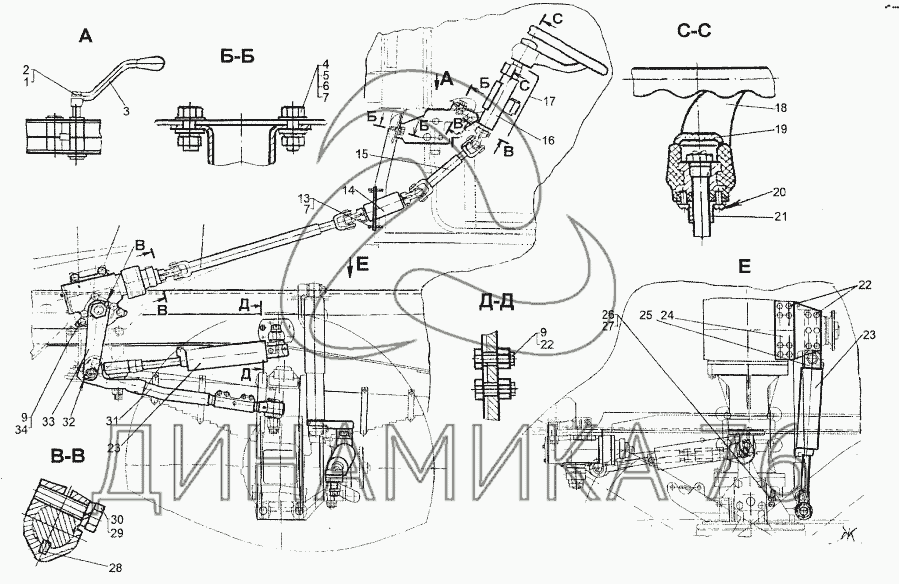 Схемы запчастей предназначены для справочных целей! Мы продаем не все запчасти от Установка рулевого управления на МЗКТ-74171, представленные в этом списке.