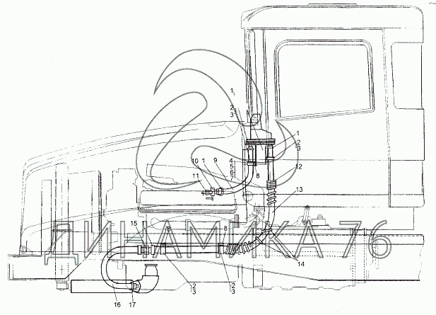 Перечень комплектующих от Установка трубопроводов отопителя на МЗКТ-74171