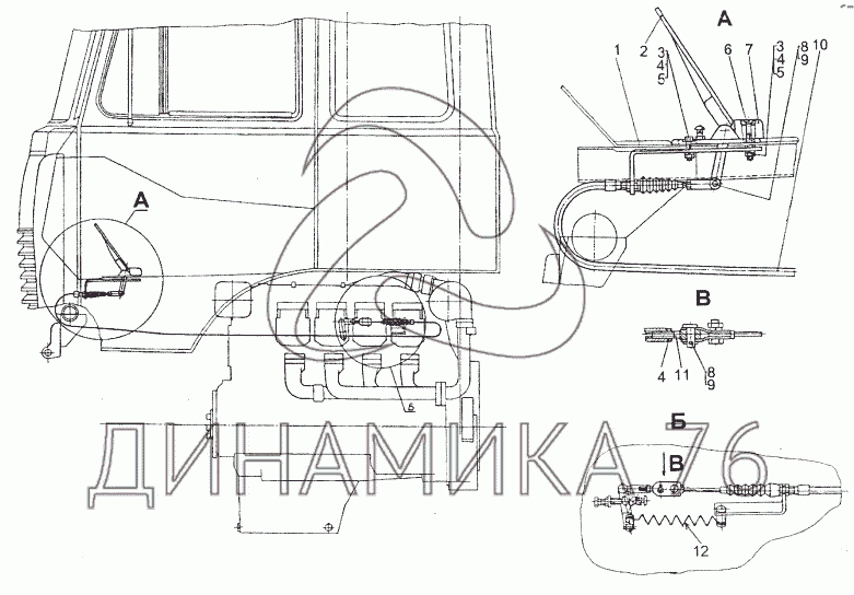 Привод управления подачей топлива на МЗКТ-74296 (до 2010 г.)