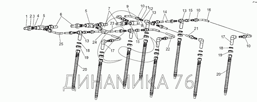 Перечень комплектующих от Трубопроводы системы накачки шин на МЗКТ-74296