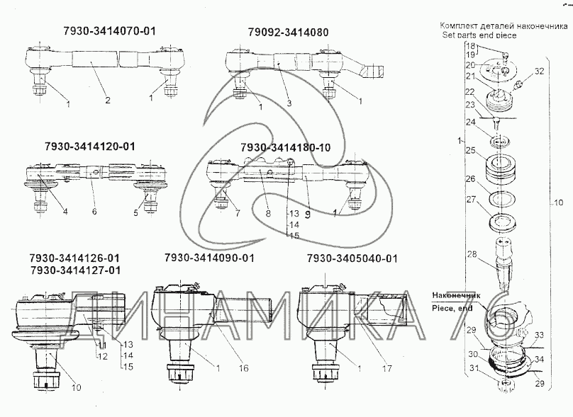 Перечень комплектующих от Тяги и наконечники на МЗКТ-74296