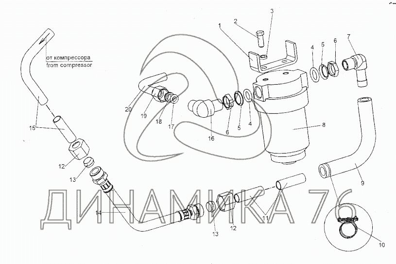 Схемы запчастей предназначены для справочных целей! Мы продаем не все запчасти от Установка фильтра воздушного на МЗКТ-74296, представленные в этом списке.