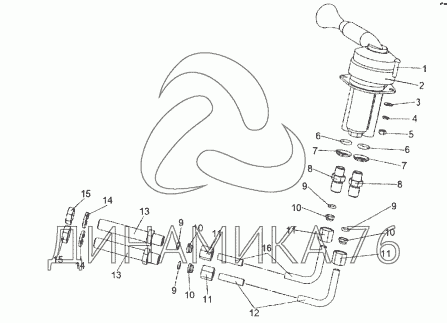Схемы запчастей предназначены для справочных целей! Мы продаем не все запчасти от Установка крана стояночного тормоза на МЗКТ-74296, представленные в этом списке.