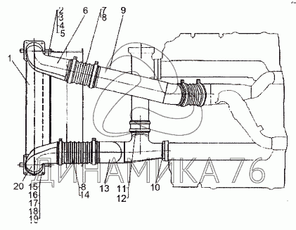 Перечень комплектующих от Установка охладителя наддува на МЗКТ-74296
