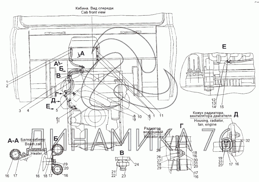 Перечень комплектующих от Установка трубопроводов отопителя кабины на МЗКТ-74296