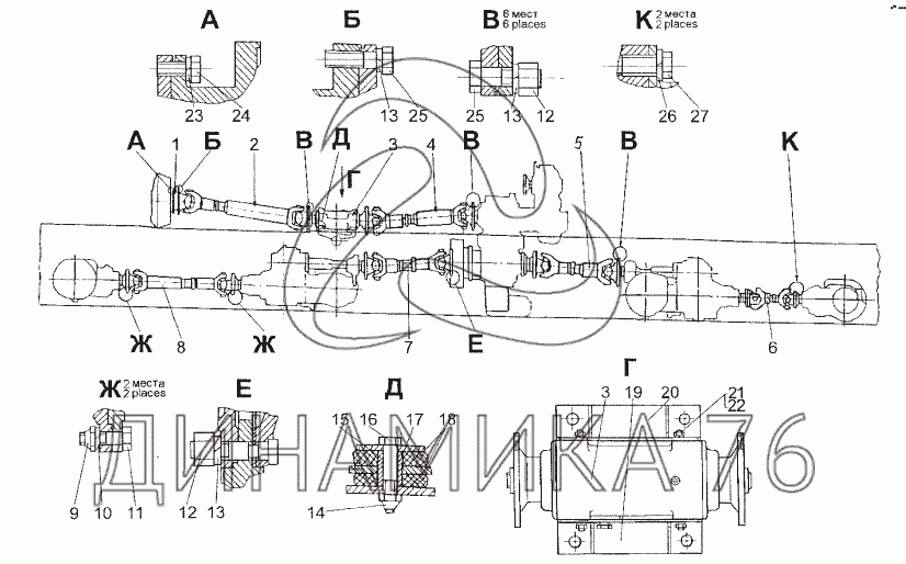 Схемы запчастей предназначены для справочных целей! Мы продаем не все запчасти от Установка валов трансмиссионных на МЗКТ-74296, представленные в этом списке.