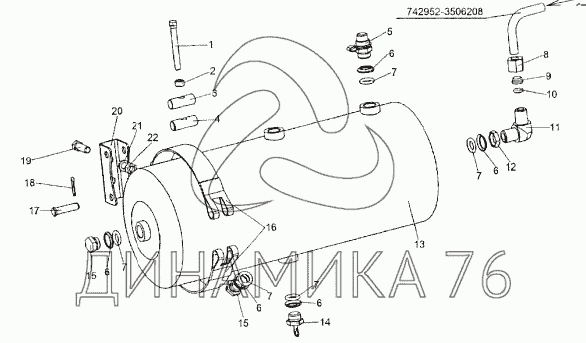 Схемы запчастей предназначены для справочных целей! Мы продаем не все запчасти от Установка воздушного баллона потребителей на МЗКТ-74296, представленные в этом списке.