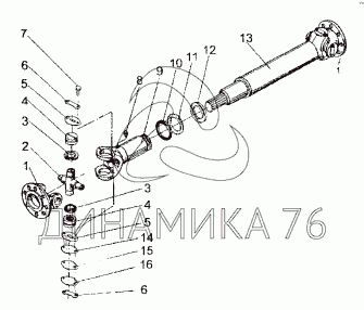 Перечень комплектующих от Вал карданный 547A-2201010-01 на МЗКТ-74296