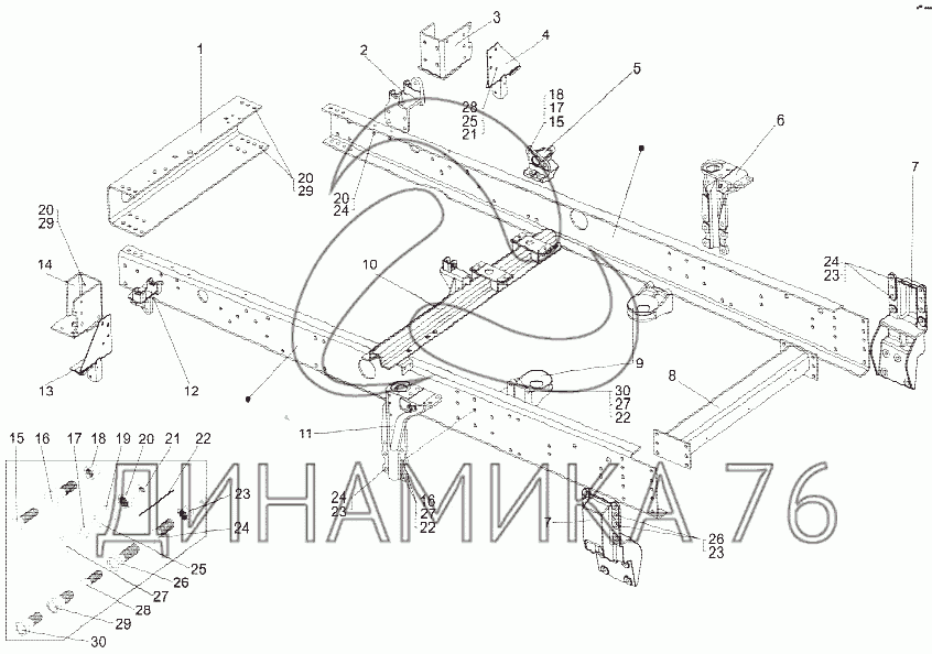 Перечень комплектующих от Надрамник 79092-2800020 на МЗКТ-7429
