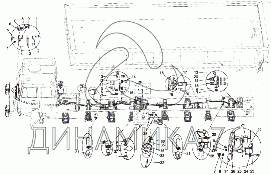 Схемы запчастей предназначены для справочных целей! Мы продаем не все запчасти от Установка электрооборудования на шасси на МЗКТ-7429, представленные в этом списке.