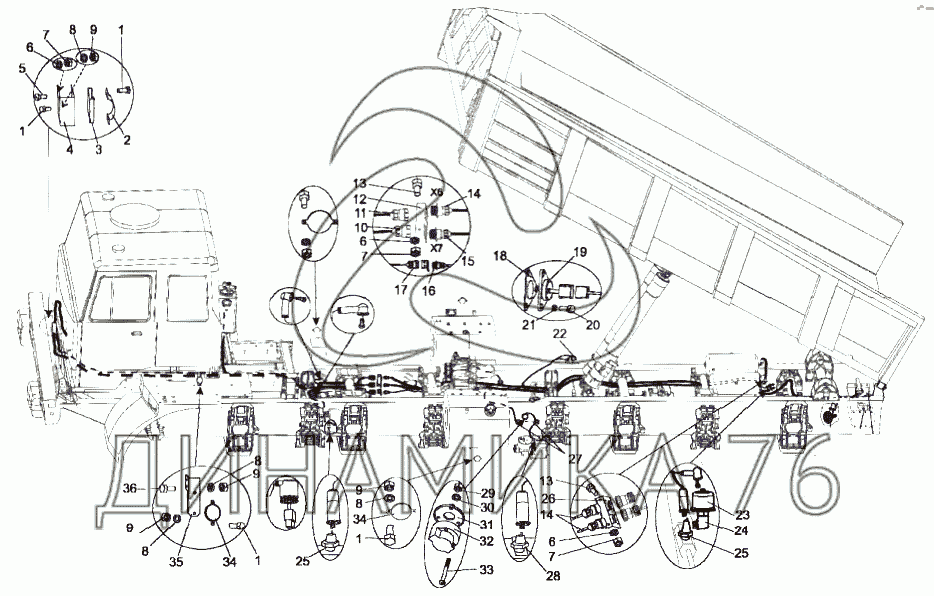 Схемы запчастей предназначены для справочных целей! Мы продаем не все запчасти от Установка электрооборудования на шасси на МЗКТ-7429, представленные в этом списке.