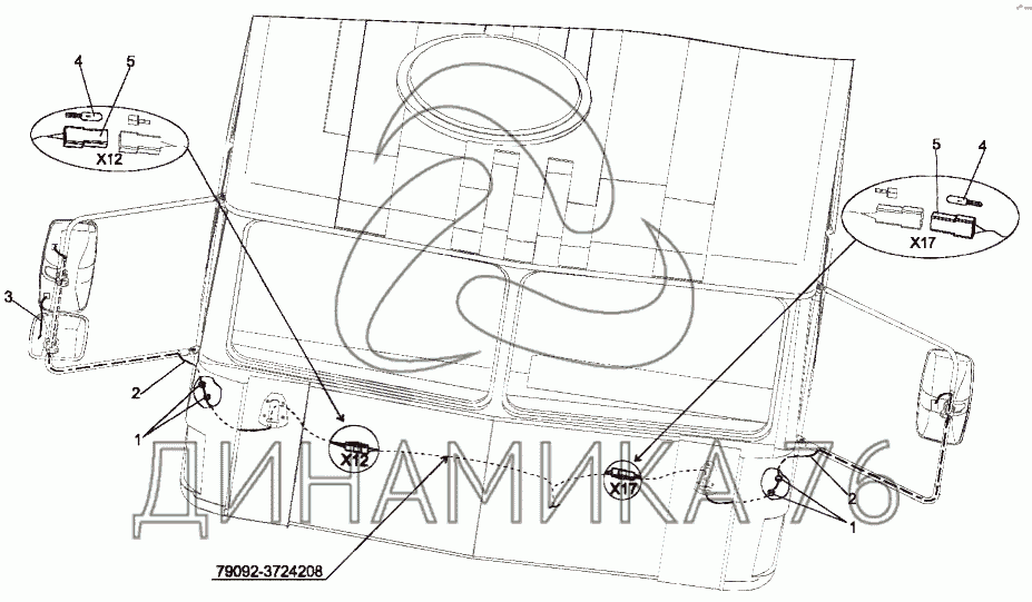 Перечень комплектующих от Установка обогреваемых зеркал на МЗКТ-7429