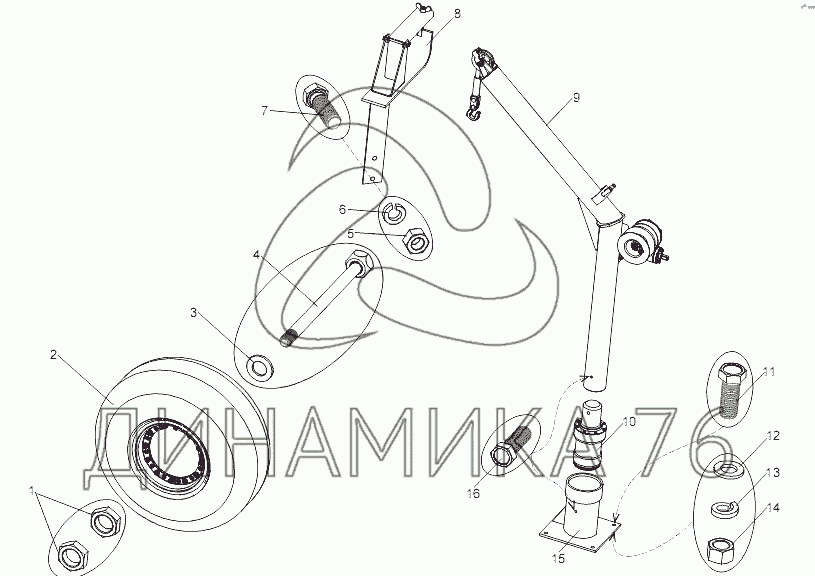 Перечень комплектующих от Установка подъемника запасного колеса на МЗКТ-7429
