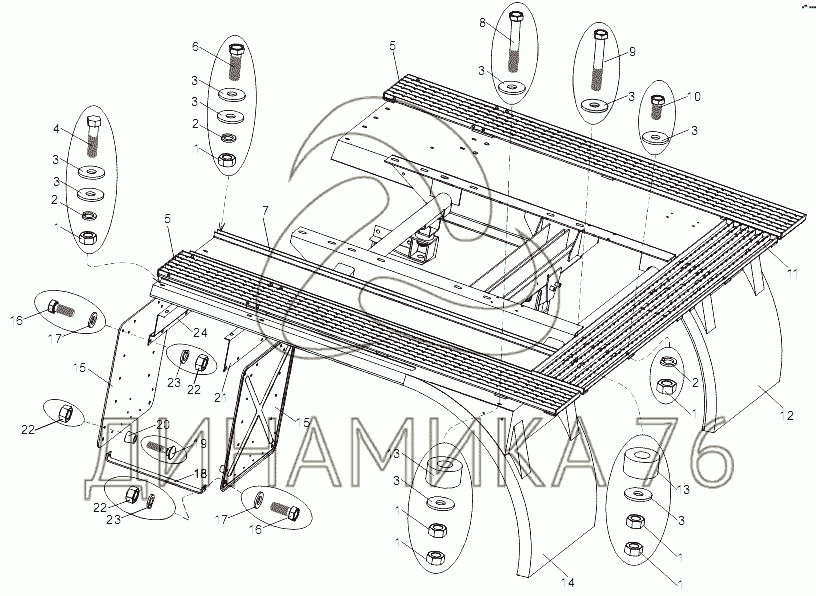 Перечень комплектующих от Установка задних крыльев и подножек на МЗКТ-7429