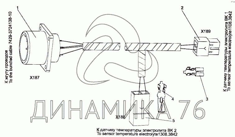 Перечень комплектующих от Жгут проводов 74131-3724291-10 на МЗКТ-7429