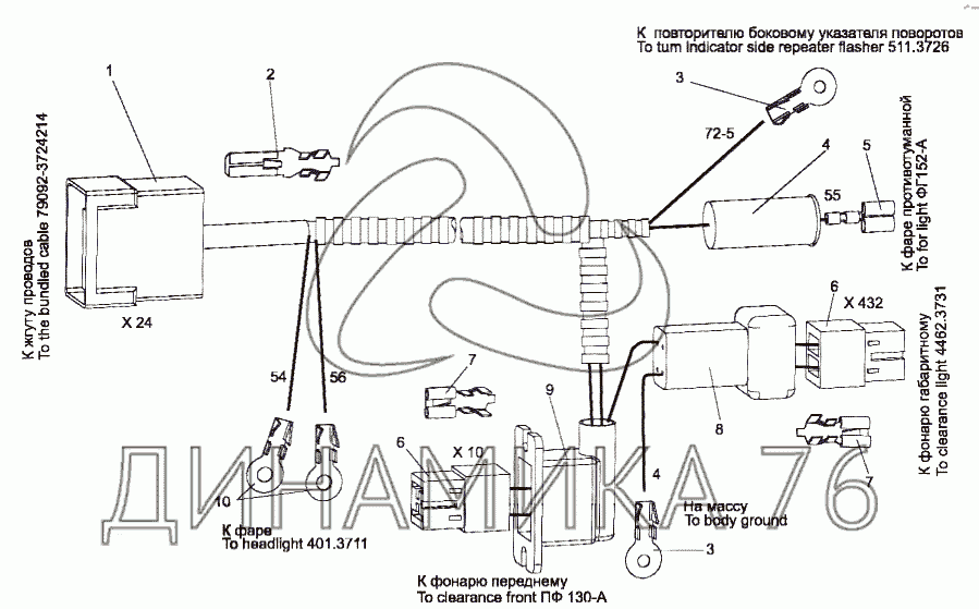 Перечень комплектующих от Жгут проводов 7429-3724680-10 на МЗКТ-7429
