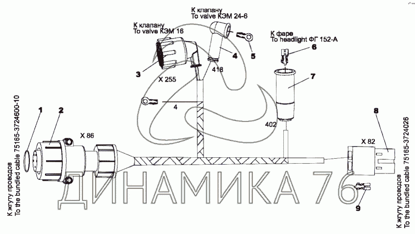 Перечень комплектующих от Жгут проводов 75165-3724608 на МЗКТ-7429