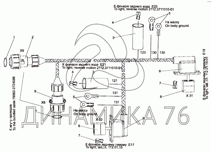 Перечень комплектующих от Жгут проводов 79092-3724026 на МЗКТ-7429
