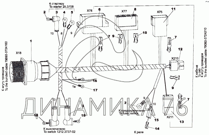 Перечень комплектующих от Жгут проводов 79092-3724158 на МЗКТ-7429