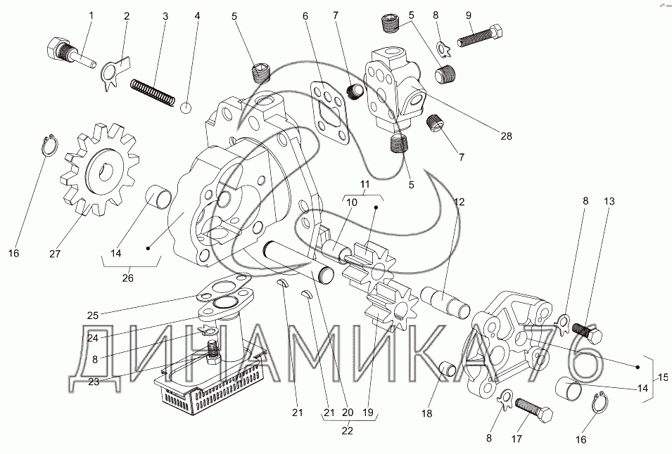 Перечень комплектующих от Масляный насос 202-1704010-10 на МЗКТ-751652
