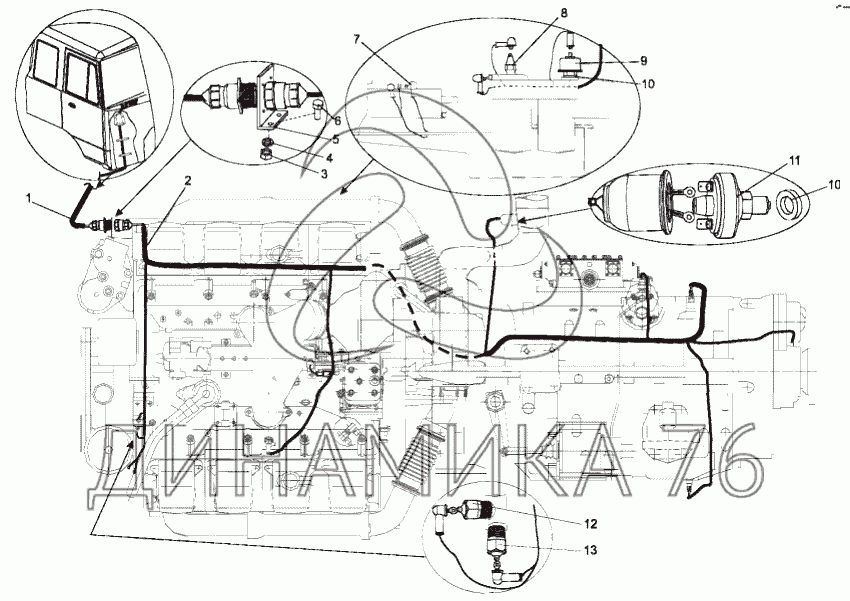 Установка электрооборудования на двигателе на МЗКТ-751652 (до 2005 г.)