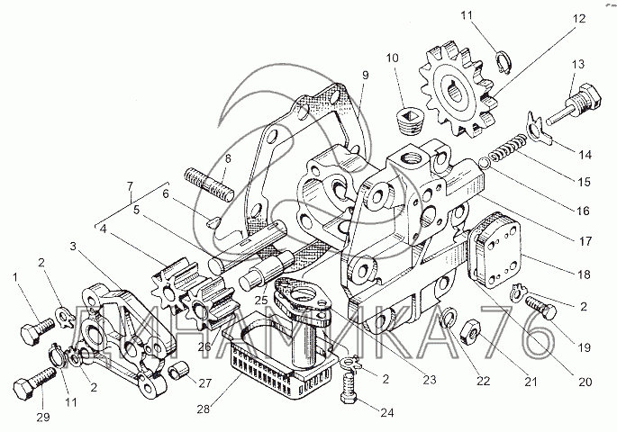 Перечень комплектующих от Масляный насос 202-1704010 на МЗКТ-79011