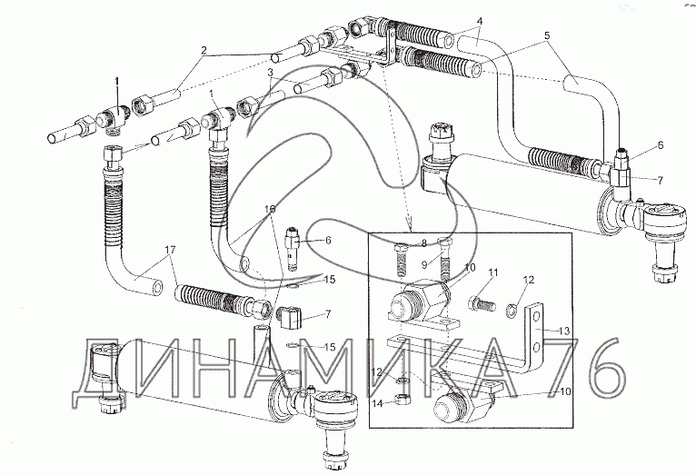 Трубопроводы к цилиндрам на МЗКТ-79011 (до 2010 г.)