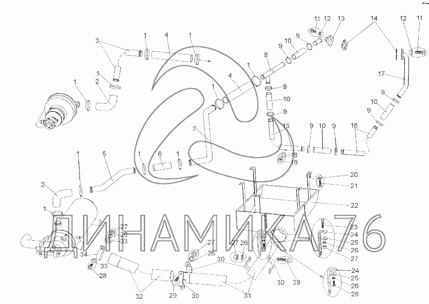 Перечень комплектующих от Трубопроводы системы подогрева двигателя на МЗКТ-79011