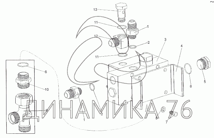 Перечень комплектующих от Установка блока клапанов на МЗКТ-79011