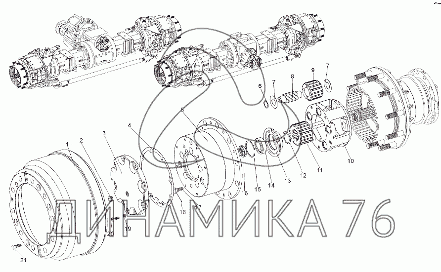 Схемы запчастей предназначены для справочных целей! Мы продаем не все запчасти от Установка колесной передачи передних мостов на МЗКТ-79011, представленные в этом списке.