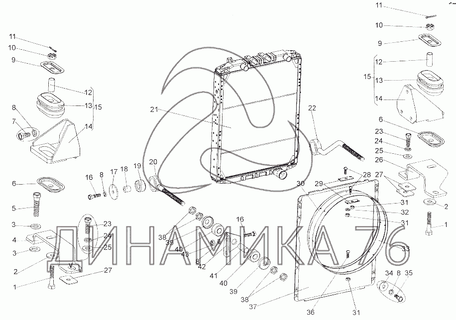 Схемы запчастей предназначены для справочных целей! Мы продаем не все запчасти от Установка радиатора на МЗКТ-79011, представленные в этом списке.