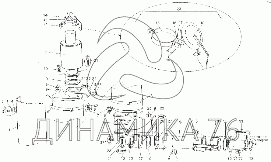 Схемы запчастей предназначены для справочных целей! Мы продаем не все запчасти от Установка системы выпуска отработавших газов на МЗКТ-79011, представленные в этом списке.