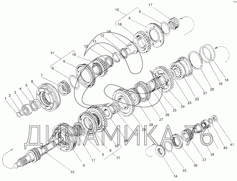 Валы и шестерни первичного вала на МЗКТ-79011 (до 2010 г.)