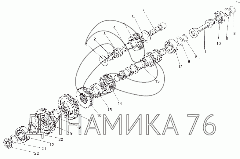 Валы и шестерни промежуточного вала на МЗКТ-79011 (до 2010 г.)