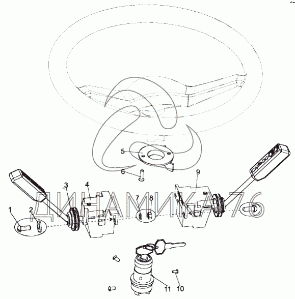 Перечень комплектующих от Установка переключателей на рулевой колонке на МЗКТ-79091