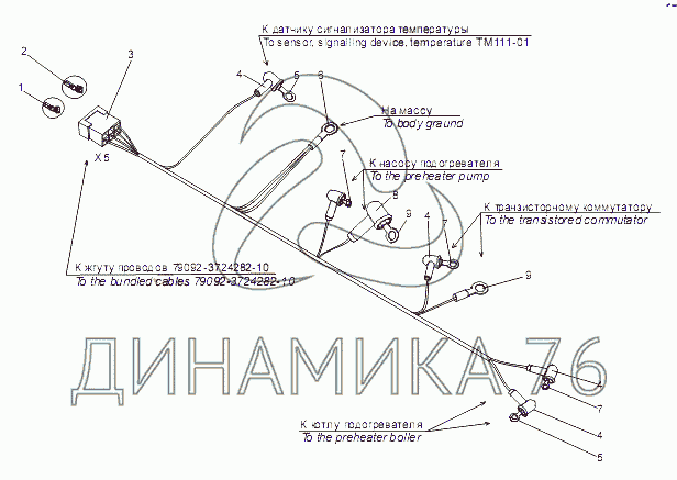 Перечень комплектующих от Жгут проводов подогревателя 79092-3724120 на МЗКТ-79091