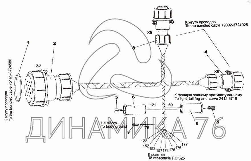 Перечень комплектующих от Жгут проводов 75165-3724588 на МЗКТ-79092 (нов.)