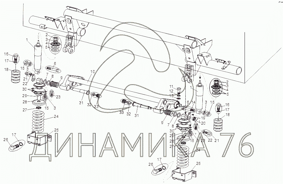 Перечень комплектующих от Подрессоривание кабины переднее на МЗКТ-79096