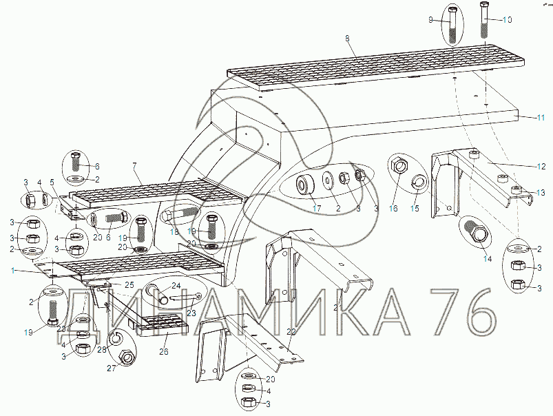 Перечень комплектующих от Установка крыльев и подножек на МЗКТ-79096