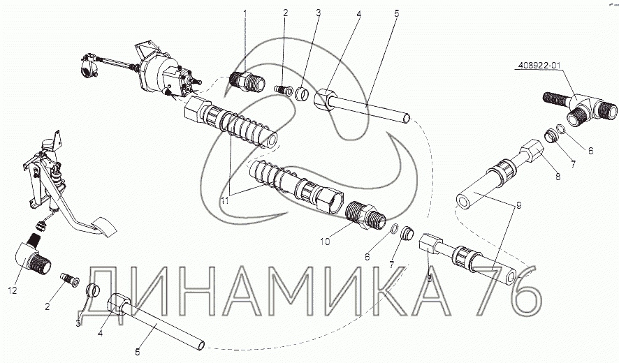 Перечень комплектующих от Установка привода управления сцеплением на МЗКТ-79096