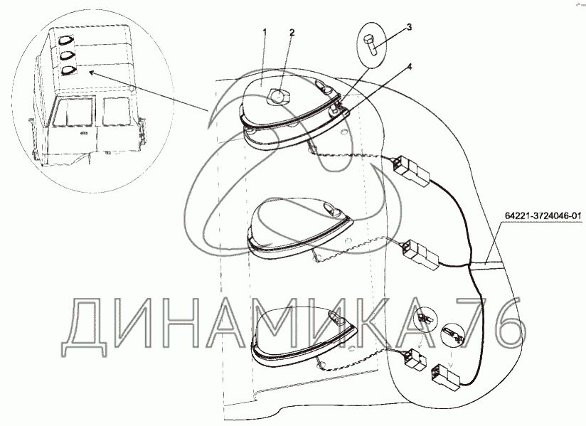 Перечень комплектующих от Установка фонарей знака автопоезда на МЗКТ-79097