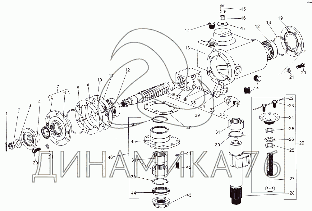 Перечень комплектующих от Рулевой механизм 7930-3401004 на МЗКТ-7930-200