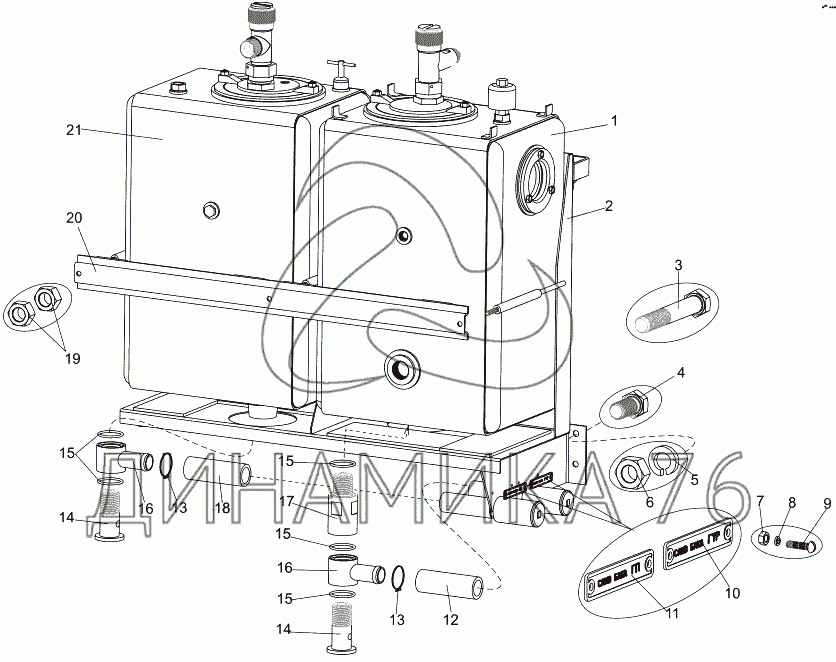 Перечень комплектующих от Установка баков на МЗКТ-7930-200