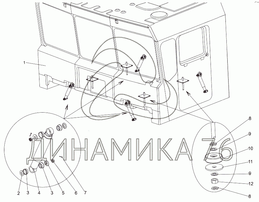 Схемы запчастей предназначены для справочных целей! Мы продаем не все запчасти от Установка кабины на МЗКТ-7930-200, представленные в этом списке.