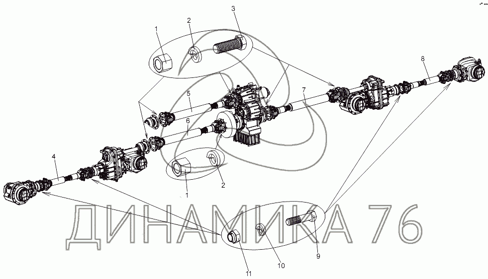 Перечень комплектующих от Установка карданных валов на МЗКТ-7930-200