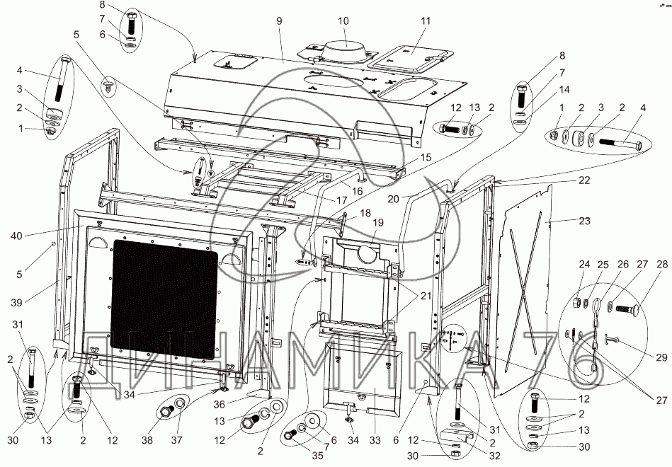 Схемы запчастей предназначены для справочных целей! Мы продаем не все запчасти от Установка левого ограждения на МЗКТ-7930-200, представленные в этом списке.
